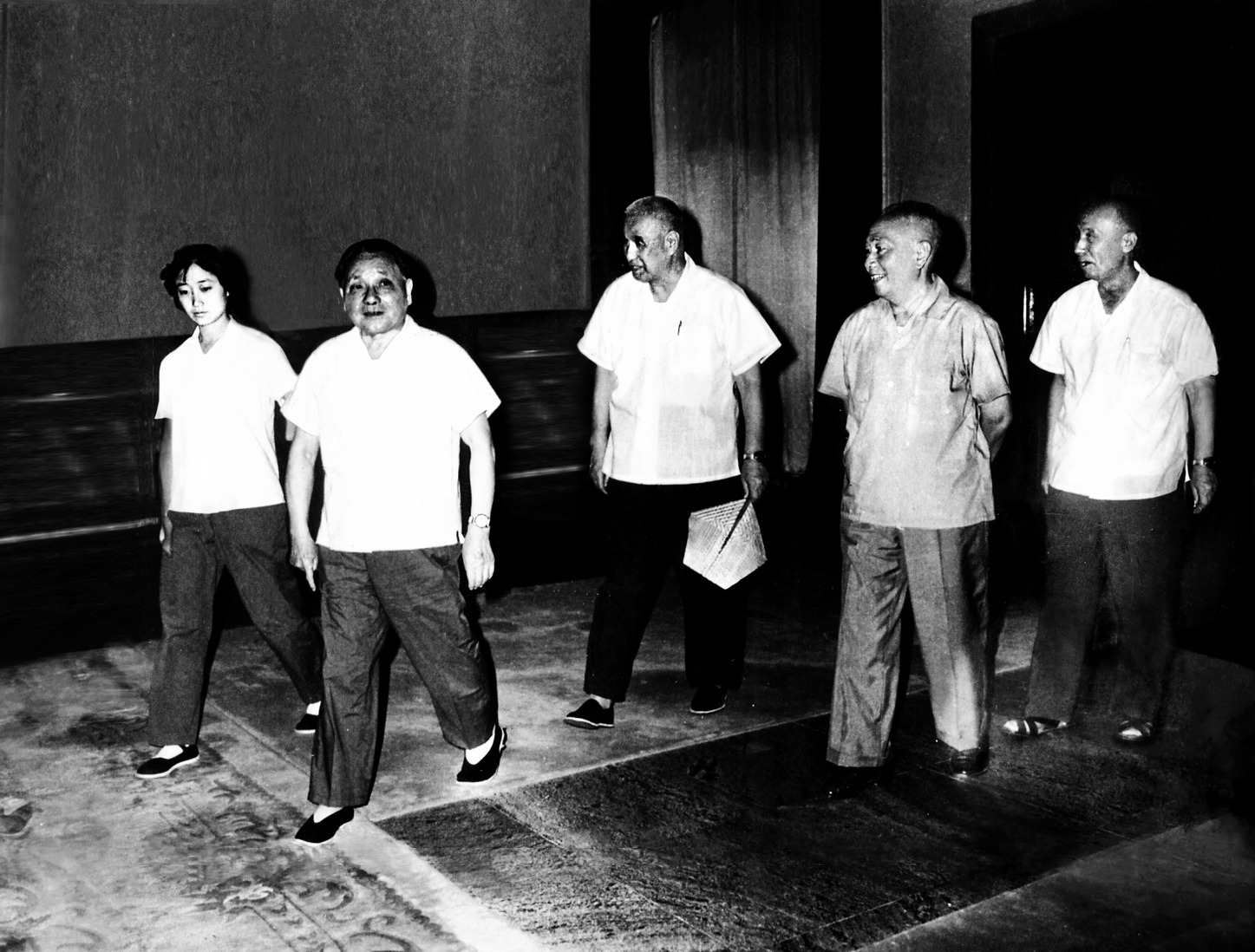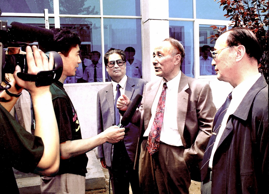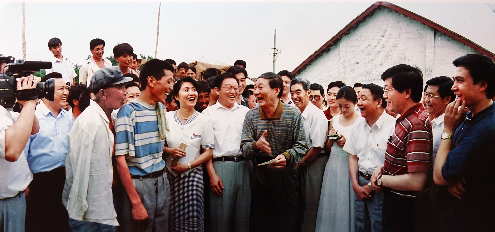 1994年5月14日 纪念焦裕禄逝世30周年之际,采访《县委书记的好榜样焦裕禄》的三位作者穆青(右二)、冯健(右一)、周原(右三)。